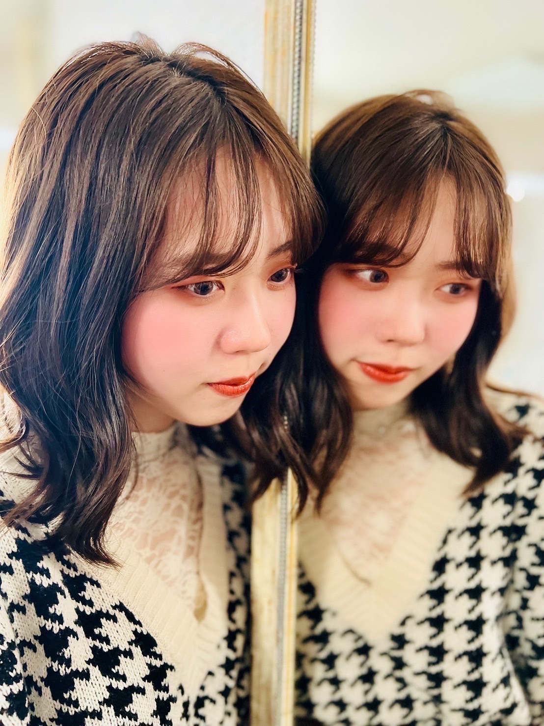 鏡の反射を利用しつつ、綺麗さ可愛らしさをかけ合わせて少し甘めな雰囲気で仕上げてみました。